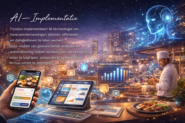 Met AI-implementatie brengt Foodzo innovatie naar de kern van de horeca. Wij integreren slimme technologieën die realtime inzichten bieden in klantgedrag, reserveringspatronen en operationele prestaties. Hierdoor kunnen ondernemers sneller schakelen, efficiënter werken en beter inspelen op de wensen van hun gasten.